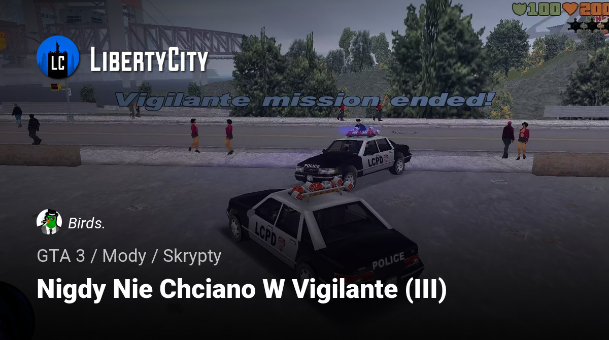This script disables the wanted level during Vigilante missions. However, you will not be able to start a mission if you are already wanted—this is done for balance.
