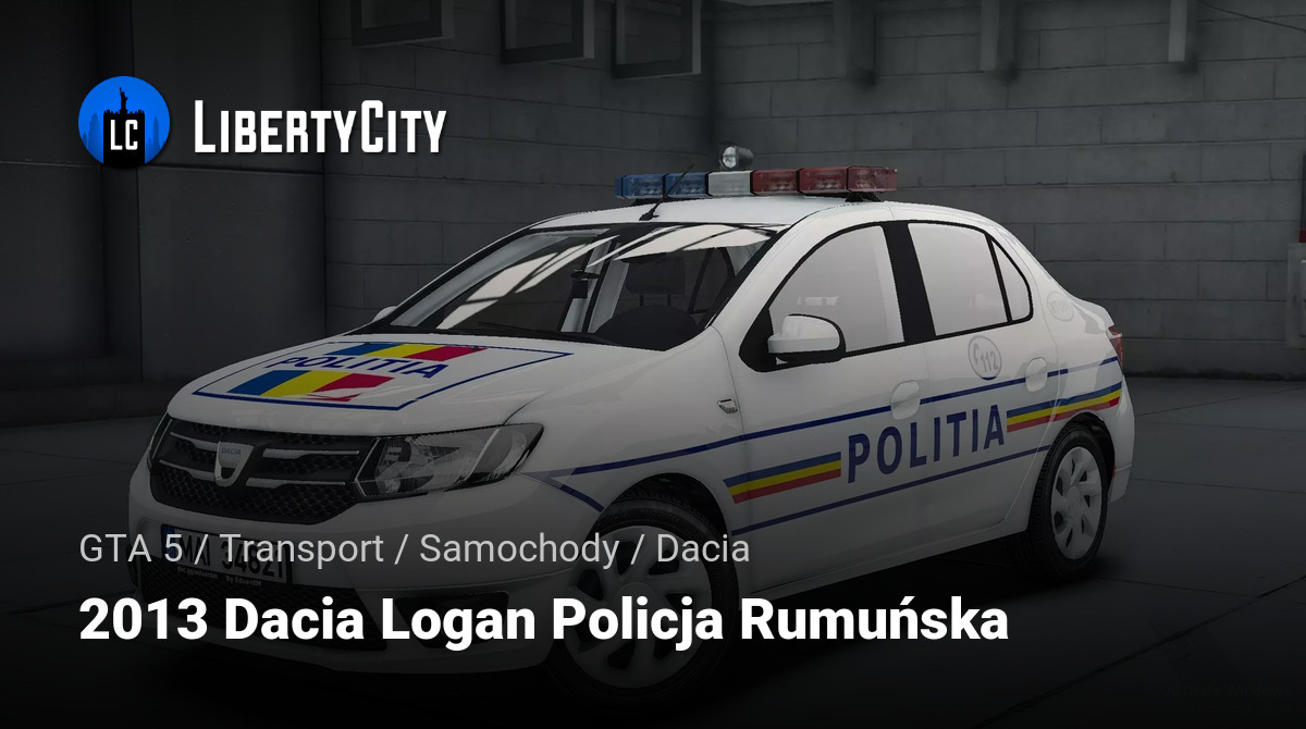 Dacia Logan z 2013 roku, używana przez rumuńską policję, ma prosty i funkcjonalny design. Samochód pomalowany jest na biały kolor z niebieskimi i czerwonymi akcentami. Na masce i drzwiach znajduje się napis "POLITIA" z rumuńską flagą.