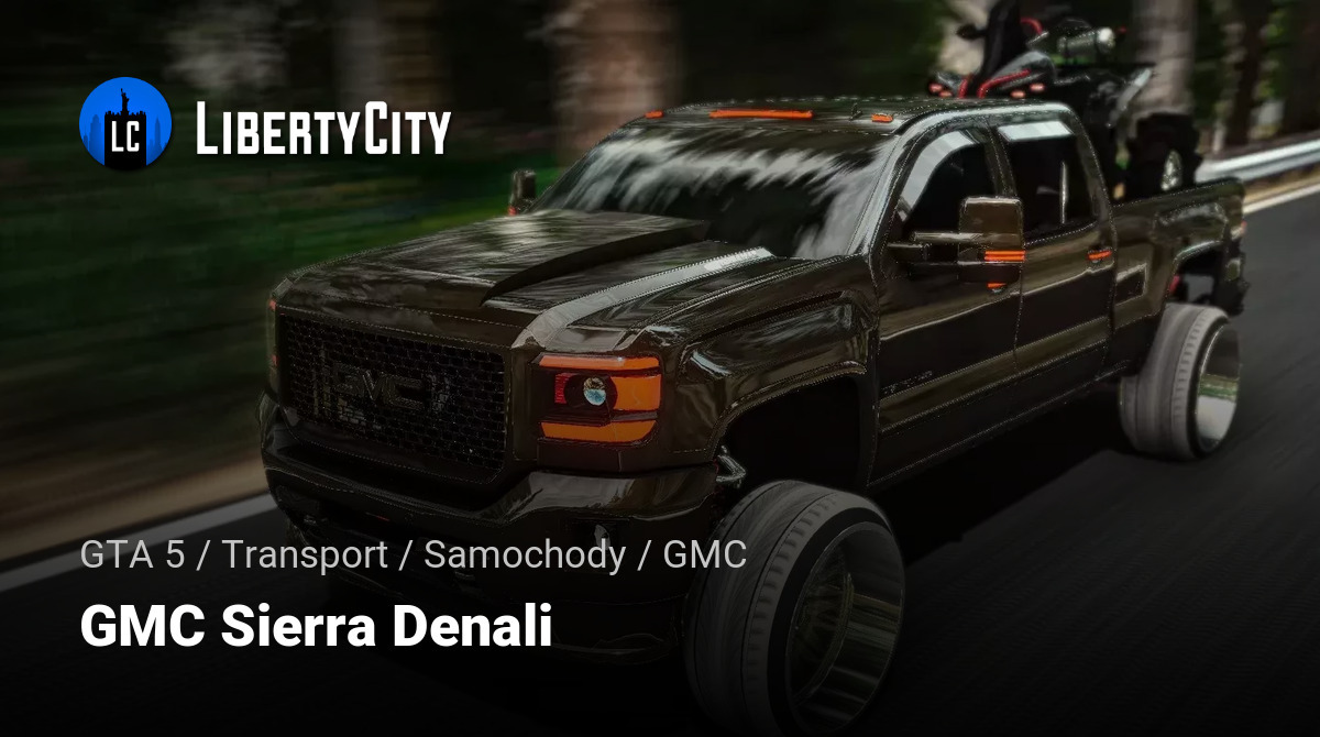 GMC Sierra Denali do GTA 5. GMC Sierra Denali to masywny i imponujący pickup o agresywnym i nowoczesnym designie. Przednia część pojazdu wyróżnia się dużą kratką chłodnicy z jaskrawoczerwoną emblematyką GMC, potężnym zderzakiem i wyrazistą optyką L...