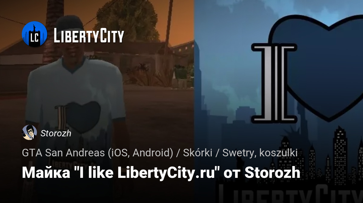 • Майка \"I like LibertyCity.ru\" от Storozh / GTA San Andreas (iOS, Android)