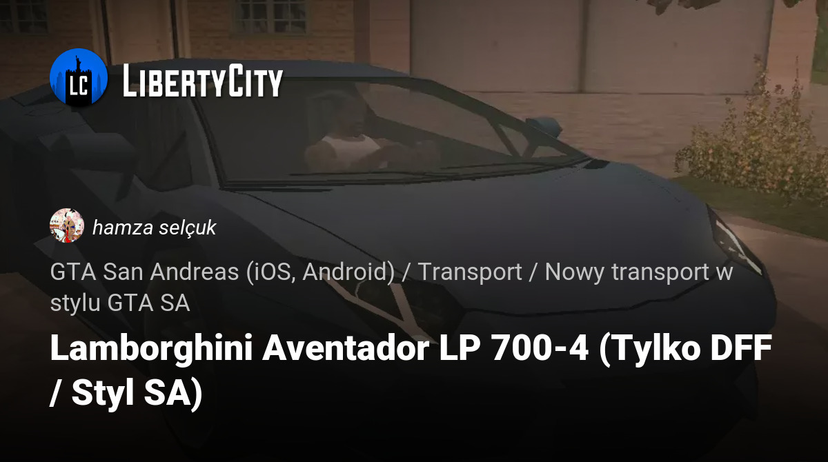 Lamborghini Aventador LP 700-4 Low Poly and DFF Only mod.No txd or image file needed.The file have low poly and low weight sa friendly (479 kb).