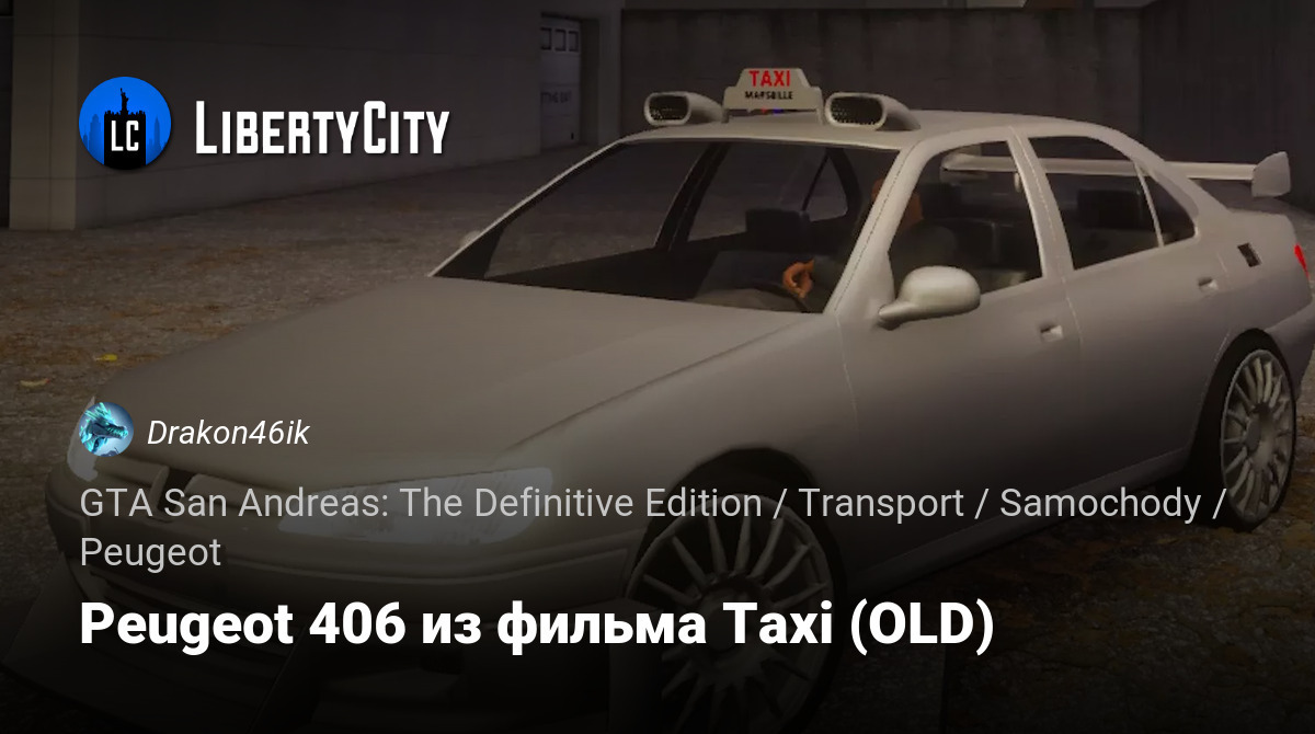 Данная модель добавляет в игру знаменитый Peugeot 406 такси Марсель, из фильма Такси!