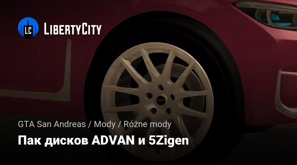 Пак дисков ADVAN и 5Zigen для GTA San Andreas добавляет в игру коллекцию высококачественных автомобильных дисков от известных брендов ADVAN и 5Zigen.