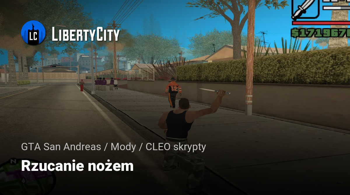Ten mod pozwala rzucać nożem w dowolną osobę. Gdy zobaczysz przechodnia lub przeciwnika, naciśnij "TAB", a nóż poleci w wskazane miejsce. Animacja rzutu jest dobrze wykonana, ale pamiętaj, że nóż odlatuje i trzeba go podnieść po rzucie.