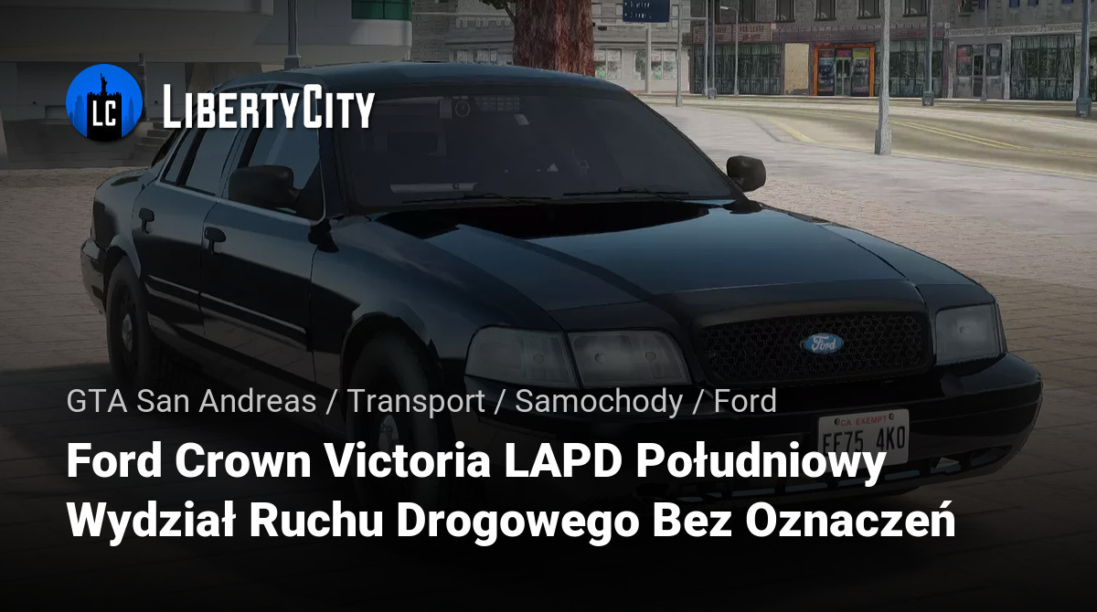 Ford Crown Victoria w wersji bez oznaczeń, używany przez Południowy Wydział Ruchu Drogowego, przeznaczony do operacji tajnych i monitorowania ruchu drogowego. Brak oznaczeń pozwala funkcjonariuszom działać niezauważenie.