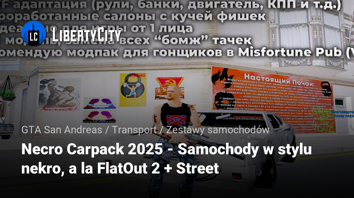 Teraz wszystkie tanie samochody będą wyglądać ekstremalnie i wesoło, w stylu podobnym do FlatOut2, Mad Max, "wrak", "street" lub "nekro". Nie traktuj tego carpacka poważnie! Zawiera mnóstwo napisów po rosyjsku, takich jak "ale nie na kredyt" oraz naklejki 4K na szybie (możesz wszystko zmienić samodzielnie).