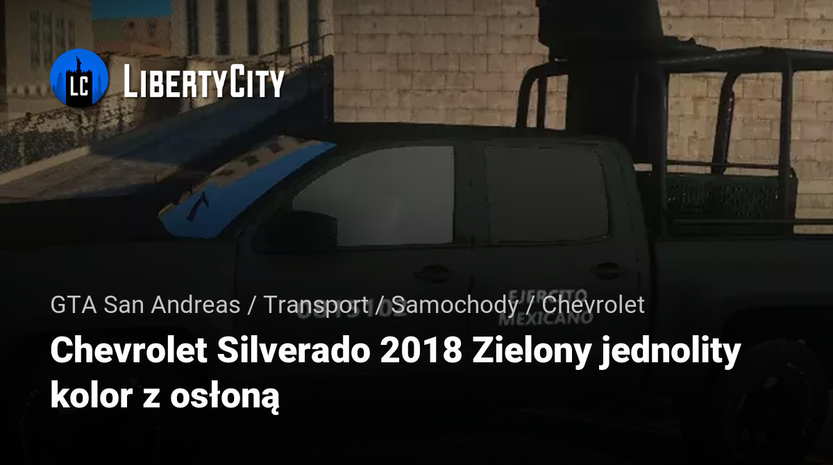 Chevrolet Silverado 2018 Bosque Color Liso Defensa — это версия пикапа с однотонной зелёной окраской, предназначенная для использования в лесистой местности и оборудованная усиленным бампером для дополнительной защиты. Такой автомобиль часто применяется силовыми структурами для патрулирования и специальных операций.
