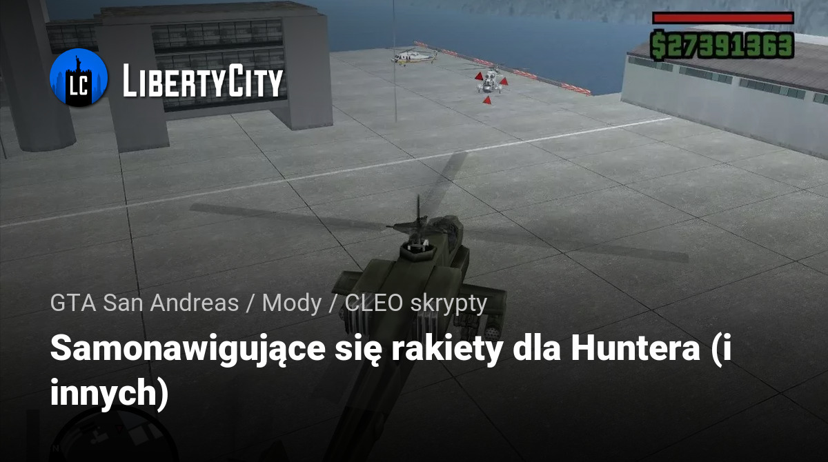 Mod dodaje samonawigujące się rakiety do helikoptera Hunter (lub innego pojazdu).