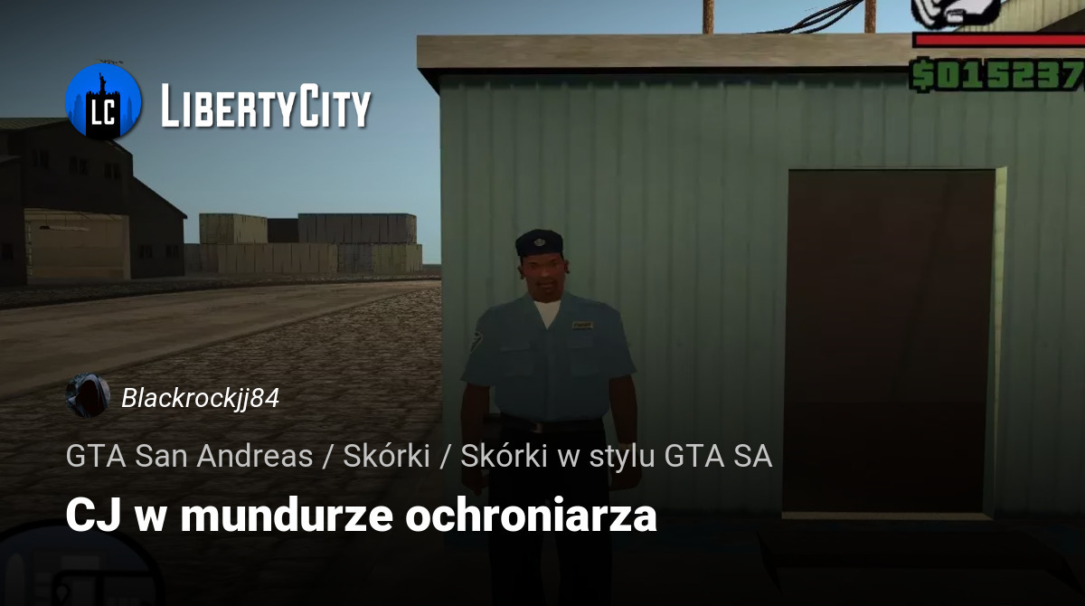 Ten mod całkowicie zmienia wygląd Carla Johnsona, przekształcając go w ochroniarza. CJ jest ubrany w klasyczny mundur ochroniarski, w tym koszulę z pagonami, spodnie i odpowiednie obuwie, tworząc wizerunek profesjonalisty gotowego do pracy. Ta skórka nadaje się zarówno do scenariuszy RPG, jak i po prostu do urozmaicenia wyglądu głównego bohatera w GTA San Andreas. Model został wykonany zgodnie z proporcjami oryginalnej postaci, co pozwala mu wyglądać harmonijnie w świecie gry. Skórka jest kompatybilna z animacjami i nie powoduje wizualnych błędów podczas ruchu, strzelania czy interakcji z obiektami.
