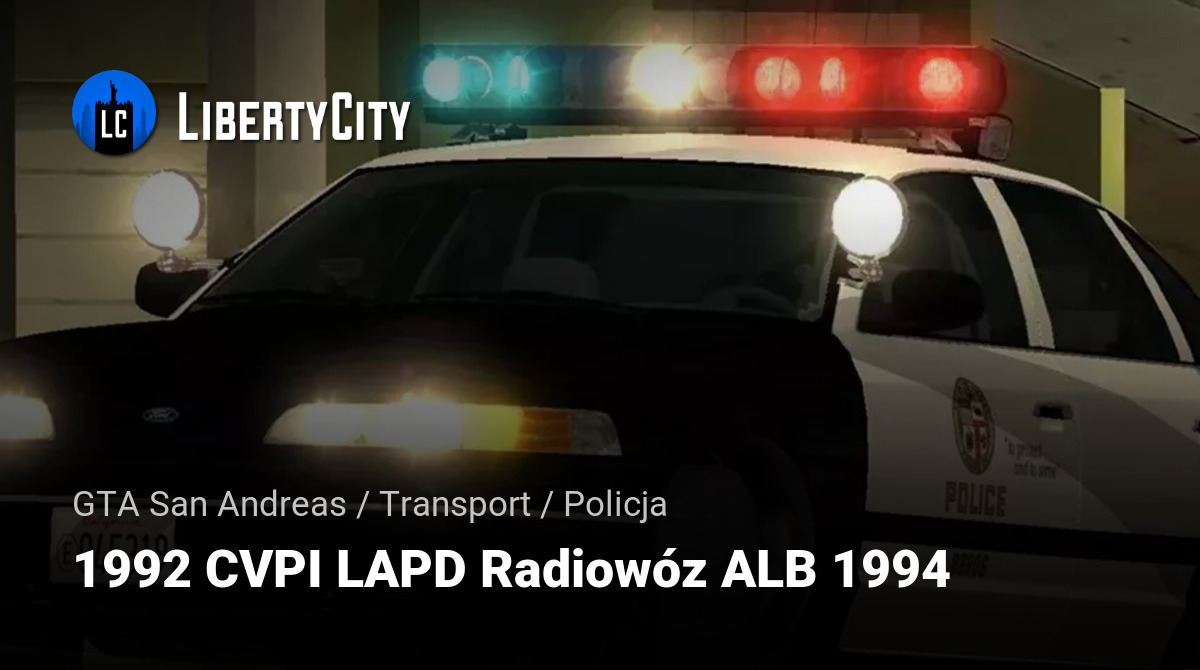 1992 CVPI LAPD Radiowóz ALB 1994 to legendarny amerykański sedan, który był używany przez departament policji Los Angeles na początku lat 90-tych. Pojazd wyróżnia się rozpoznawalnym designem, wytrzymałością oraz charakterystycznym malowaniem LAPD.