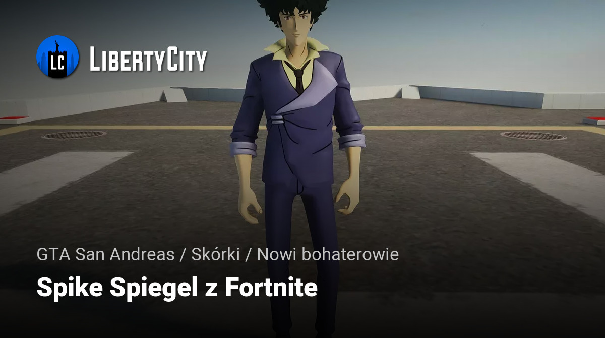 Spike Spiegel — postać z anime Cowboy Bebop, która stała się epickim wizerunkiem w Fortnite w ramach crossoveru dodanego w Rozdziale 6, Sezonie 2. Skórka kosztuje 1500 V-Dolarów i ma alternatywny styl z okularami (Okulary Włączone / Wyłączone), należy do zestawu „Cowboy Bebop” wraz z innymi tematycznymi przedmiotami kosmetycznymi.