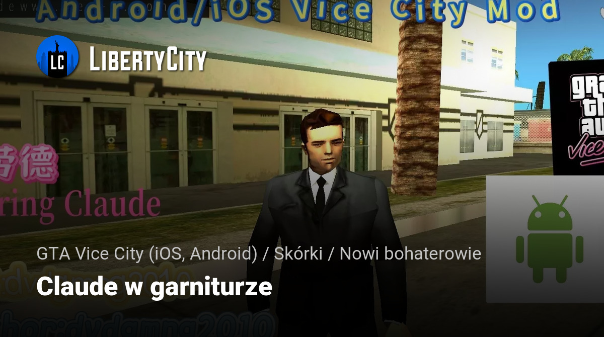 Claude, protagonista GTA 3, przybył do słonecznego Vice City i nie przeszedł niezauważony. Przymierzył zaktualizowany, spersonalizowany garnitur w stylu Vice City — lakoniczny, stylowy, doskonale pasujący do atmosfery miasta. Ta modyfikacja zastępuje standardowy kostium Tommy'ego Versettiego (player2.dff) zaktualizowanym modelem Claude'a. Wygląda świetnie w przerywnikach i podczas rozgrywki, nie powoduje błędów.